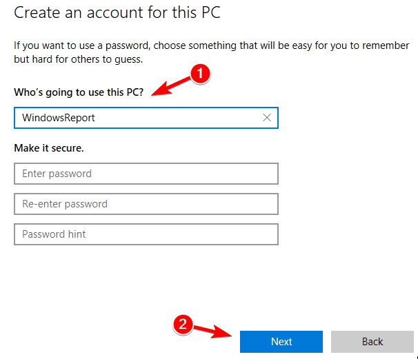 Đôi khi các vấn đề với việc dán bản sao có thể xảy ra nếu có vấn đề với tài khoản người dùng của bạn. Tài khoản của bạn có thể bị hỏng và điều đó có thể dẫn đến vấn đề này và nhiều vấn đề khác. Tuy nhiên, bạn có thể khắc phục sự cố chỉ đơn giản bằng cách tạo tài khoản người dùng mới. Để làm điều đó, chỉ cần làm theo các bước sau: