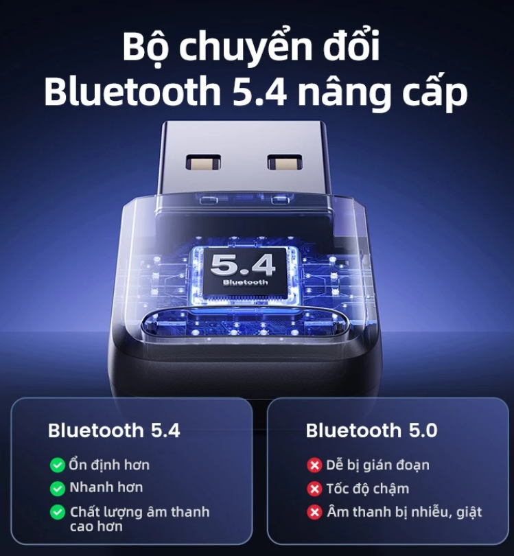 Bộ chuyển đổi Bluetooth USB Ugreen 35058 được trang bị công nghệ Bluetooth v5.4 mới nhất, tối ưu hóa độ trễ truyền và các vấn đề lỗi kết nối của Bluetooth 5.0 cũ, mang đến cho bạn kết nối nhanh hơn, ổn định hơn và thông minh hơn mà ít bị giảm chất lượng âm thanh.